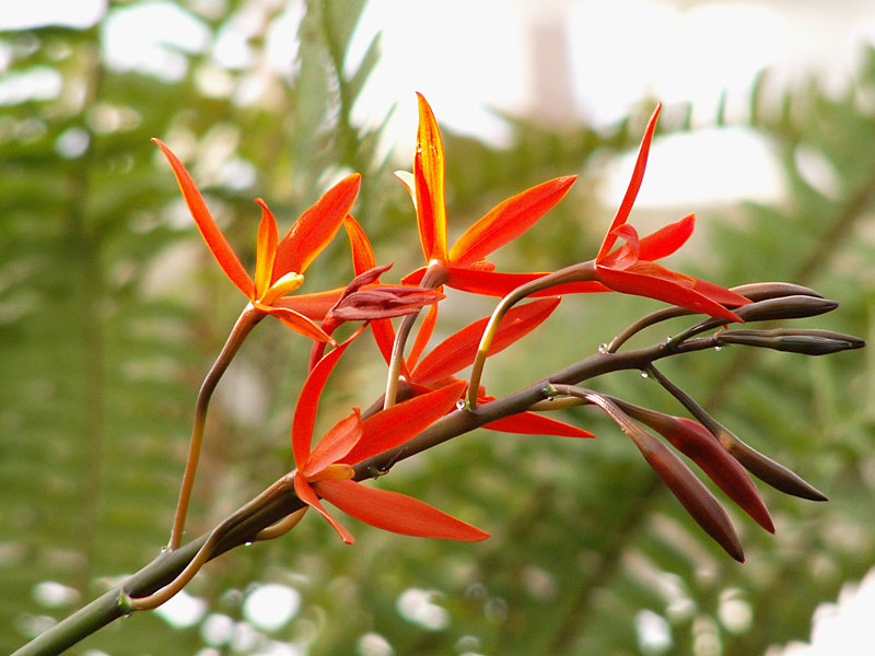 Колекція тропічних та субтропічних орхідей представлена 450 природними видами, що належать до 164 родів. Найбільш повно в колекції представлені такі роди, як дендробіум (Dendrobium Sw.) - 45 видів, каттлея (Cattleya Lindl.) - 13 видів, онцидіум (Oncidium Sw.) - 15 видів. У колекції є ціла низка рідкісних та зникаючих видів. Це представники флори Південно-Східної Азії – целогіна Лоуренса (Coelogyne lawrenceana Lindl.), різні види роду дендробіум (D. draconis Rchb.f., D. bellatulum Rolfe), ерія (Eria spp.), пафіопедилюм (Paphiopedilum delenatii Guillaum.,); Мадагаскару - ангрекум слоновий (Angraecum eburneum Вогу), ангрекум півторафутовий (Angraecum sesquipedale Thou.), південноамериканські види родів каттлея (Cattleya Lindl.) та лелія (Laelia Lindl.), поширені на дуже обмежених територіях Бразилії та Венесуели*,.